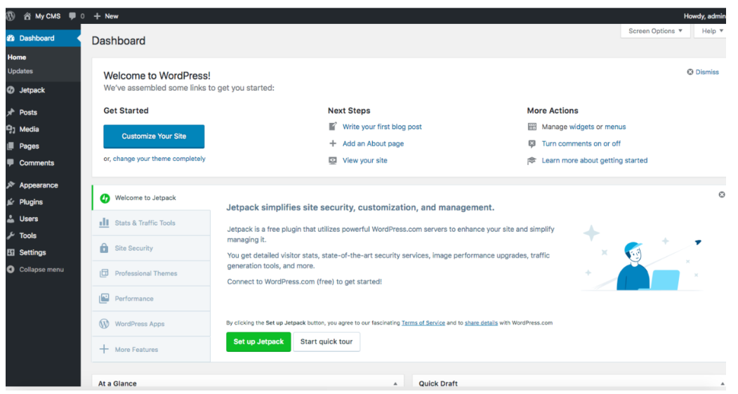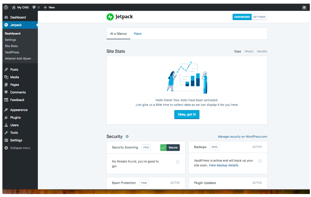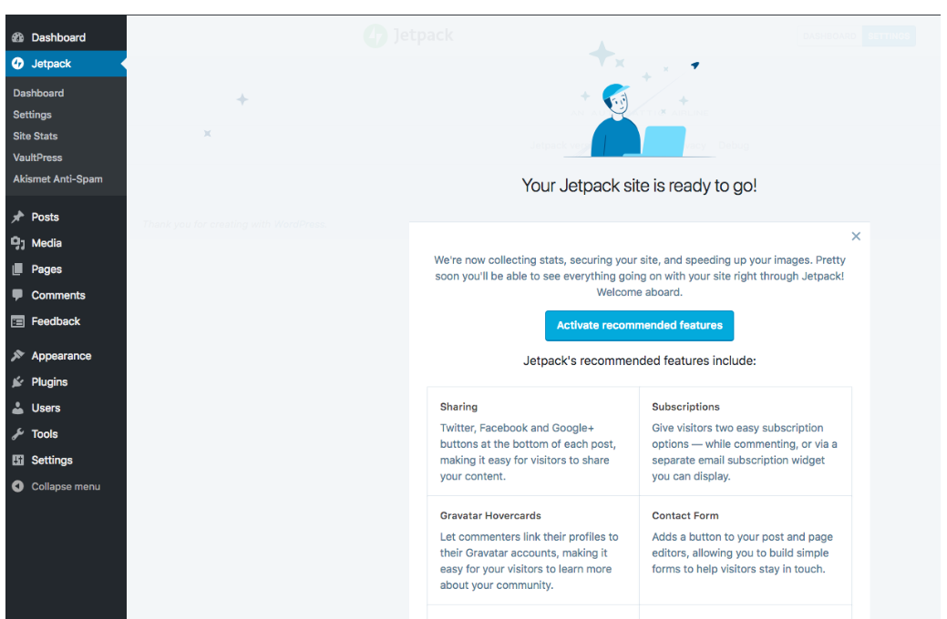 6. The last thing you will be needing to do is to activate the Jetpack in your WordPress by going back to your WordPress Admin > Jetpack.