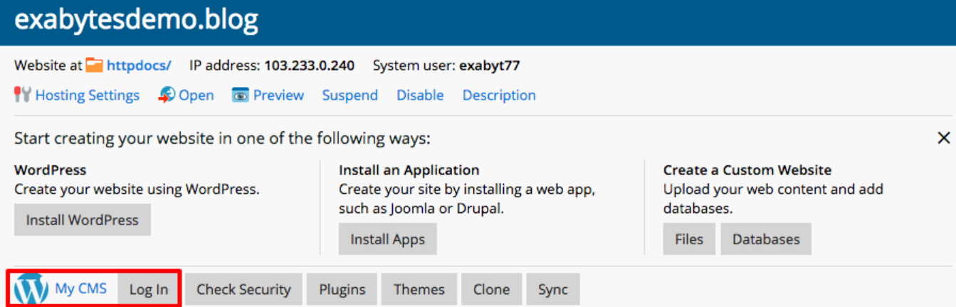 1. Login to your client area and access to your services WordPress control panel.